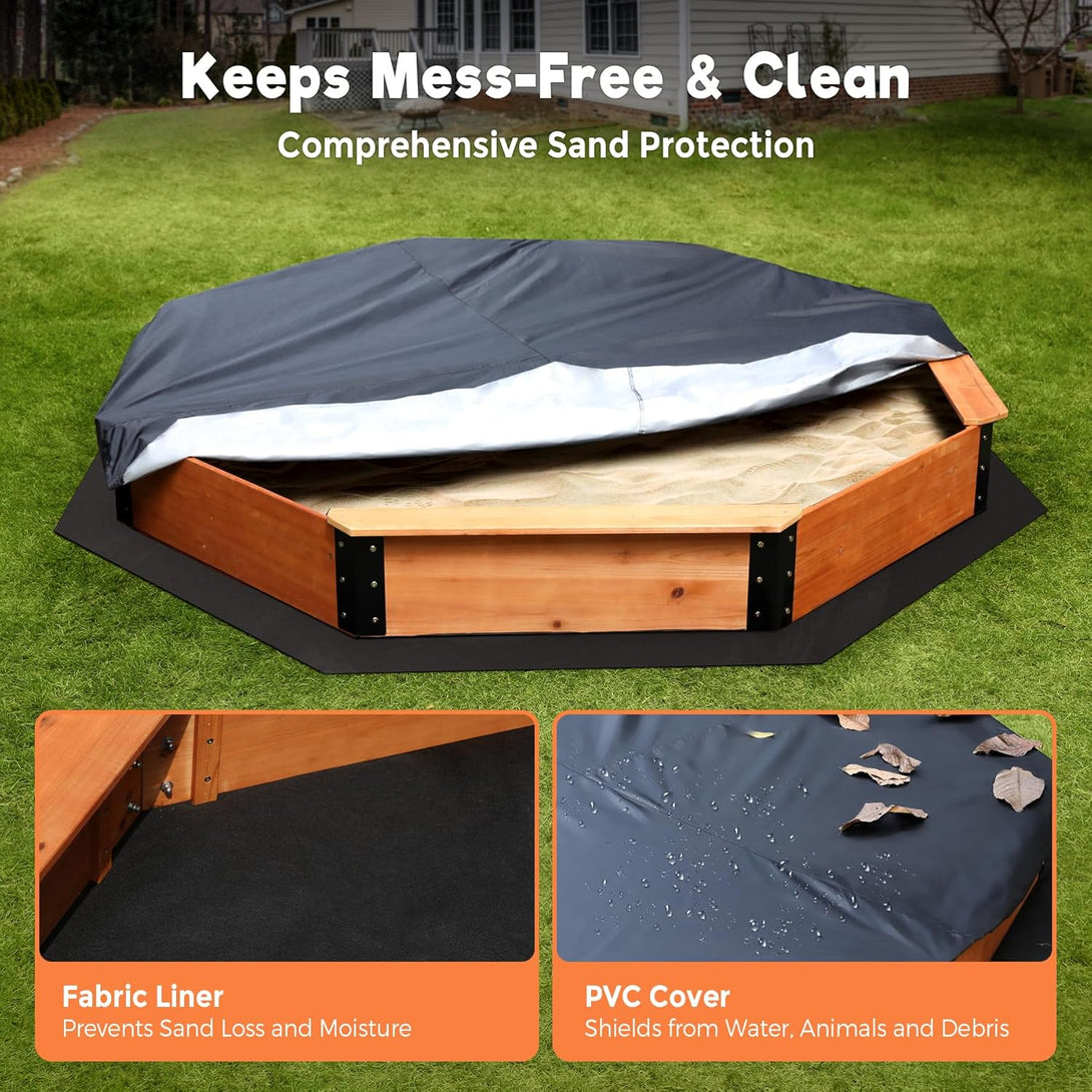 Large Outdoor Wood Sandbox 85'' × 85'' × 9'' Octagon Wooden Sand Box for Kids with Cover