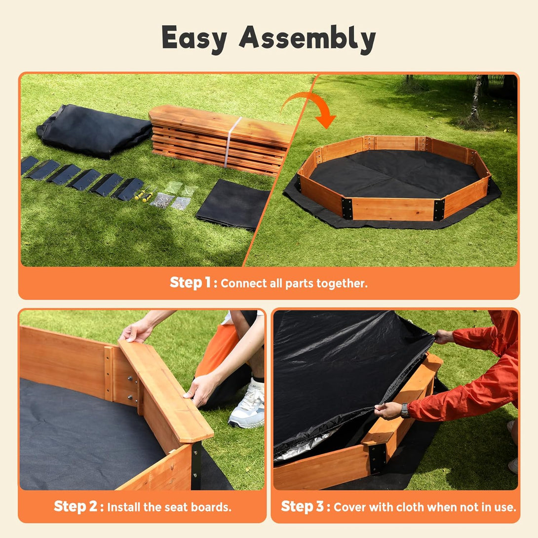 Setting up outdoor kids sandbox is a breeze, thanks to its easy and sturdy structure that simplifies the assembly steps. With just a standard screwdriver and clear installation instructions, you can assemble the sandbox in about 20-30 minutes. Please note that play-grade sand and toys are not included.